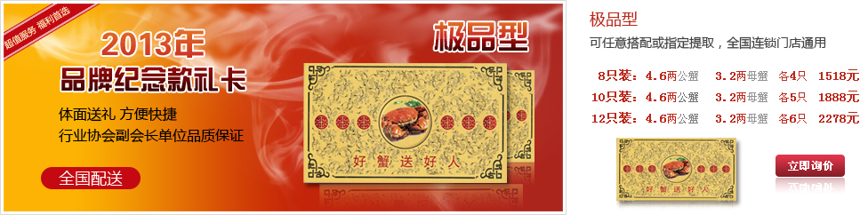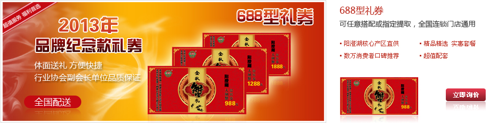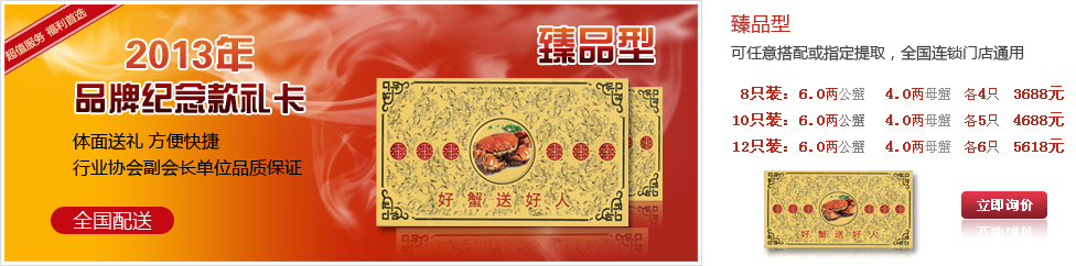 大閘蟹禮券是饋贈親朋好友、公司情意往來的好選擇,購買大閘蟹禮券也是輕松購買大閘蟹的方式!静榭丛斍椤
